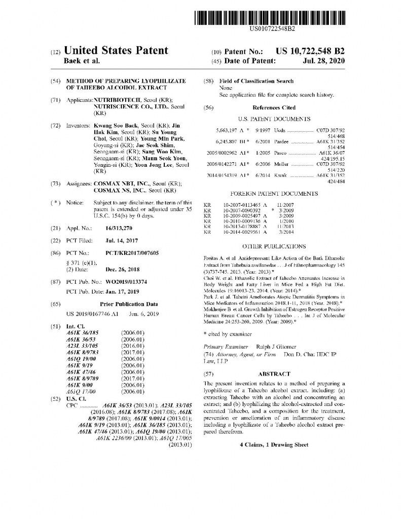 타히보 주정추출액 동결건조물의 제조방법 |